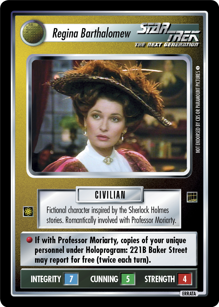 These openCards members have "Regina Barthalomew" either as "Have" or as "Want" in thier ST1E tradelist. To intitiate a trade, send a openCards "private Message" with your offer to a member on this list (click on "PM" behind the members name).
