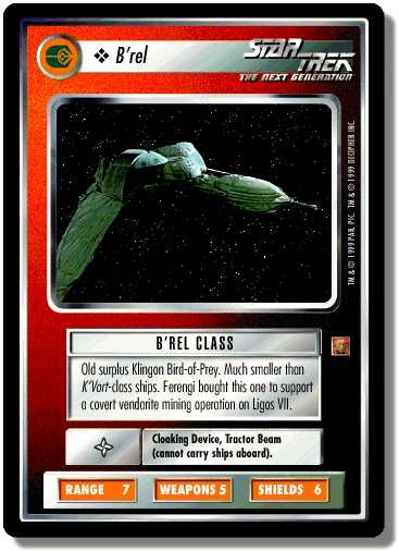 Create your own Deck in the ST1E deck section!There are 30 entries for B'rel (ST1E 8 C 118) at the Tradeplace (83 haves and 3 wants). Click here to see all trade list entries for this Common card!