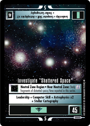 Create your own Deck in the ST1E deck section!There are 26 entries for Investigate "Shattered Space" (ST1E 1 R 171) at the Tradeplace (8 haves and 21 wants). Click here to see all trade list entries for this Rare card!