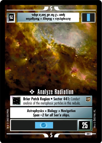 Create your own Deck in the ST1E deck section!There are 17 entries for Analyze Radiation (ST1E 15 C 28) at the Tradeplace (33 haves and 7 wants). Click here to see all trade list entries for this Common card!