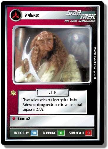 Create your own Deck in the ST1E deck section!There are 38 entries for Kahless (ST1E 10 P 74) at the Tradeplace (46 haves and 13 wants). Click here to see all trade list entries for this Very Rare Foil card!