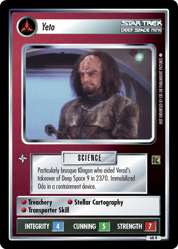 Particularly brusque Klingon who aided Verad's takeover of Deep Space 9 in 2370. Immobilized Odo in a containment device.