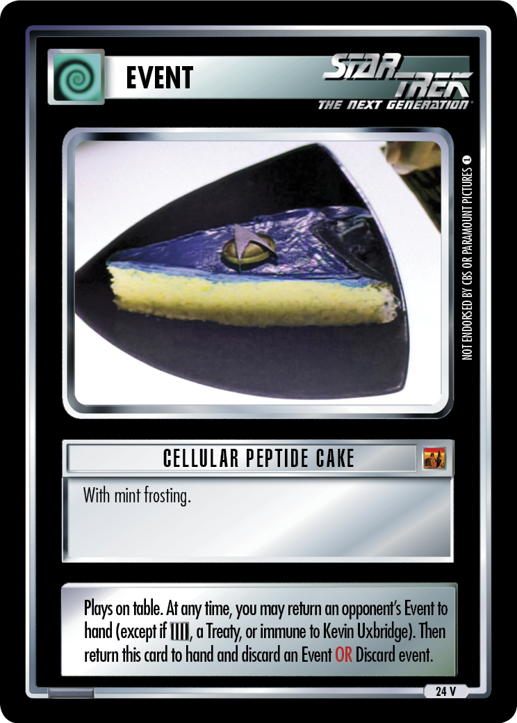 If you play OTF this card replaces the backward compatible 2E card Cellular Peptide Cake from Genesis - ST1E compatible