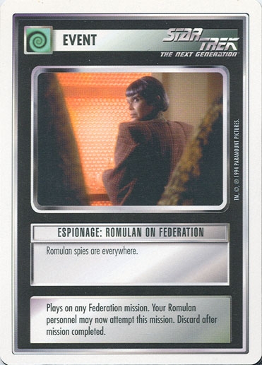 Tradelists containing "Espionage: Romulan on Federation" (ST1E 1 C 73 (WB94))