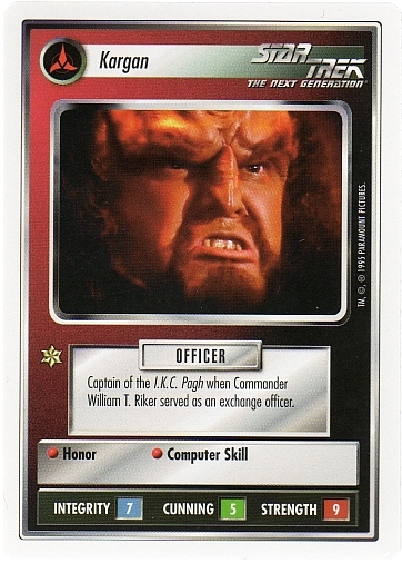 These openCards members have "Kargan" either as "Have" or as "Want" in thier ST1E tradelist. To intitiate a trade, send a openCards "private Message" with your offer to a member on this list (click on "PM" behind the members name).