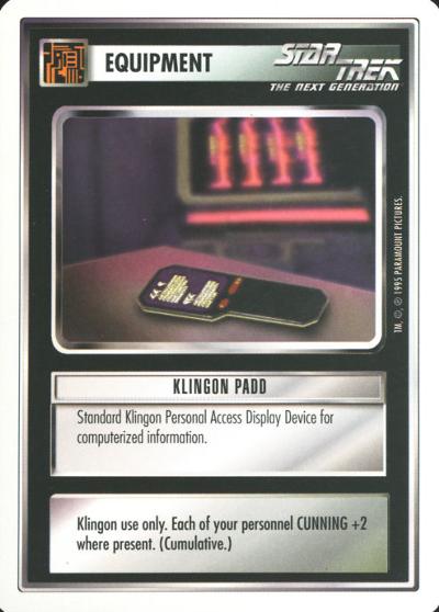 Tradelists containing "Klingon PADD" (ST1E 1 C 59 (WB95))