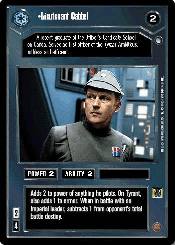 These openCards members have "Lieutenant Cabbel" either as "Have" or as "Want" in thier SW tradelist. To intitiate a trade, send a openCards "private Message" with your offer to a member on this list (click on "PM" behind the members name).